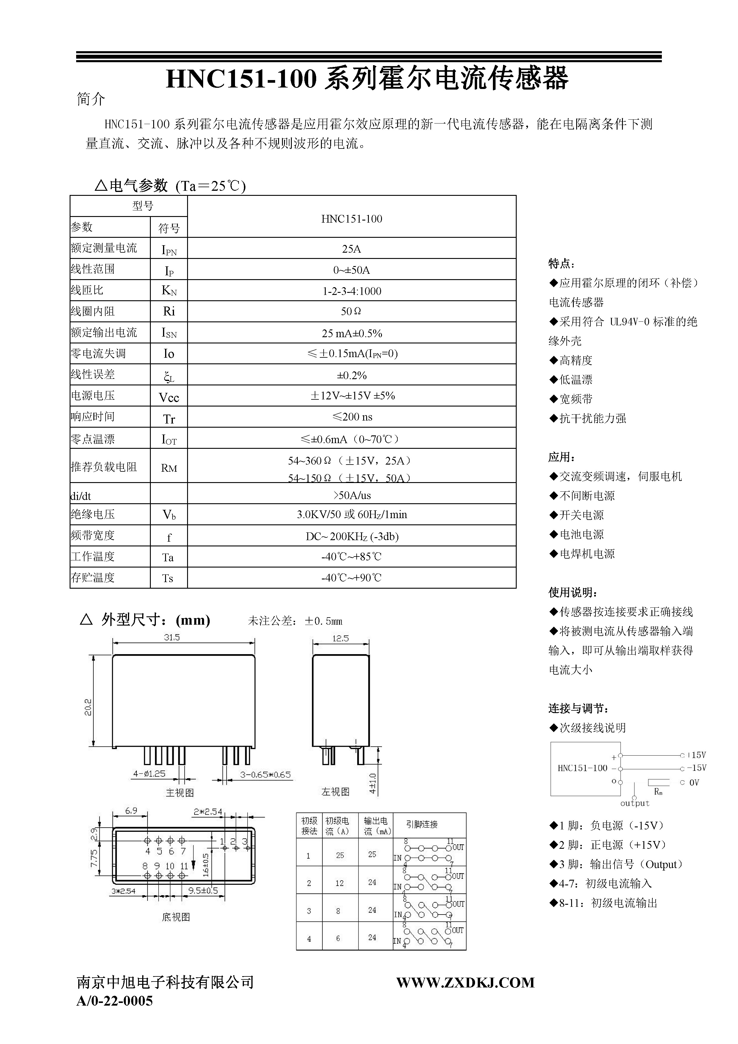 HNC151-100系列霍爾電流傳感器是應(yīng)用霍爾效應(yīng)原理的新一代電流傳感器,能在電隔離條件下測(cè)量直流、交流、脈沖以及各種不規(guī)則波形的電流。
